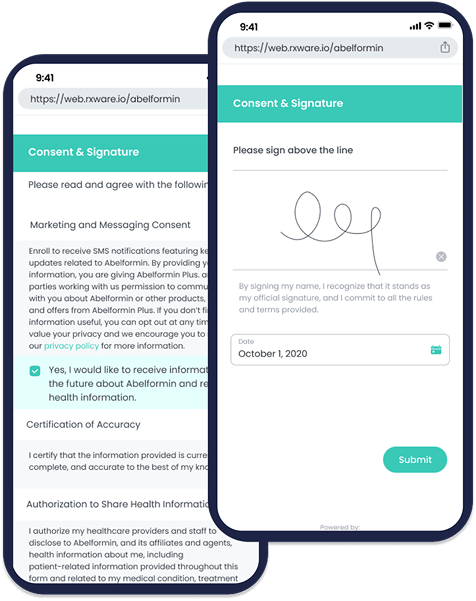 Capture consents quickly to keep patients on track in their prescription journey. Our solution simplifies workflows while ensuring the highest standards of compliance and data security.